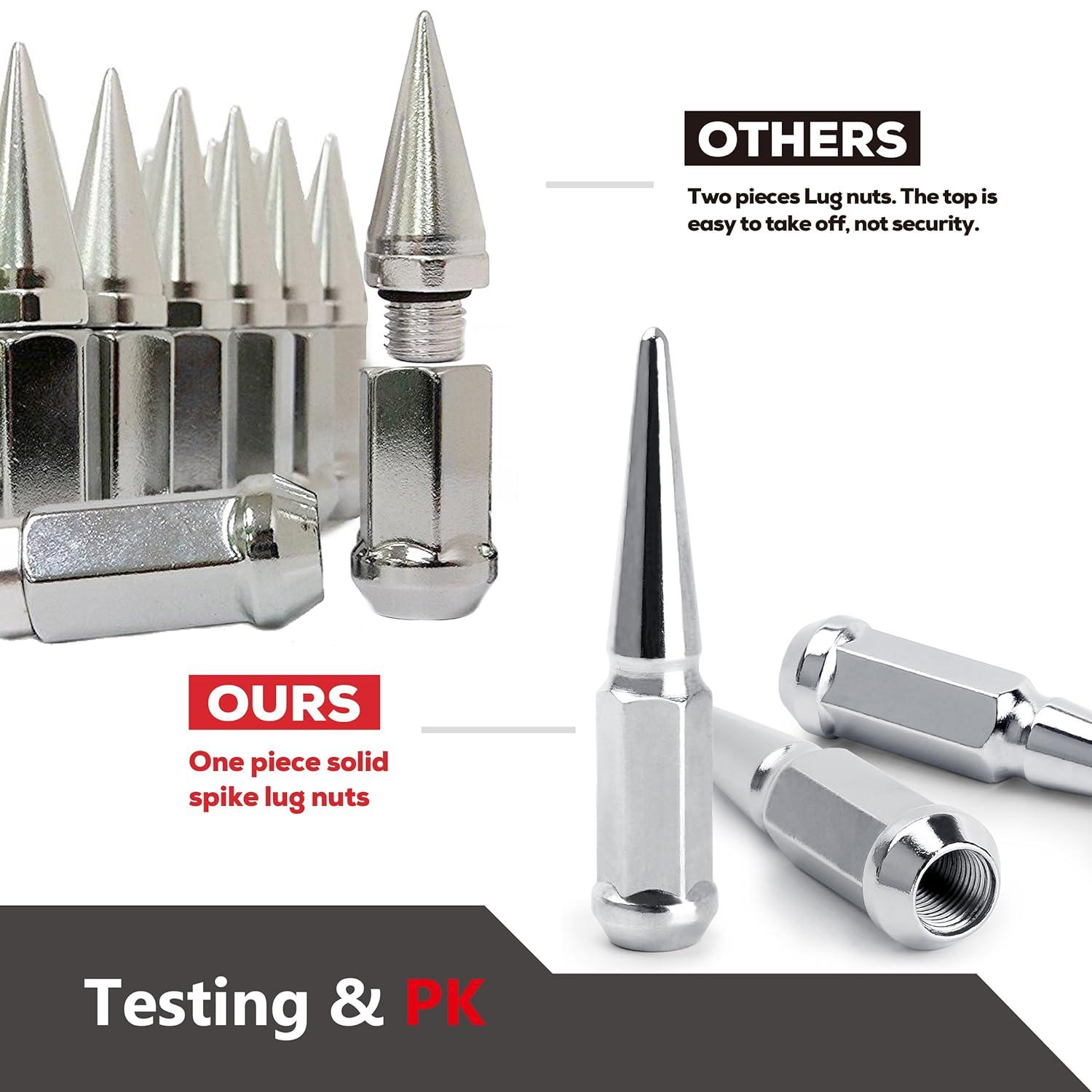 image14 mm x 15 Wheel Spike Lug Nuts 4 x Silver M14x15 Lug Nut ConeConical Bulge Seat Dynofit Silver Closed End Nuts for Chevy Silverado Aftermarket Wheel