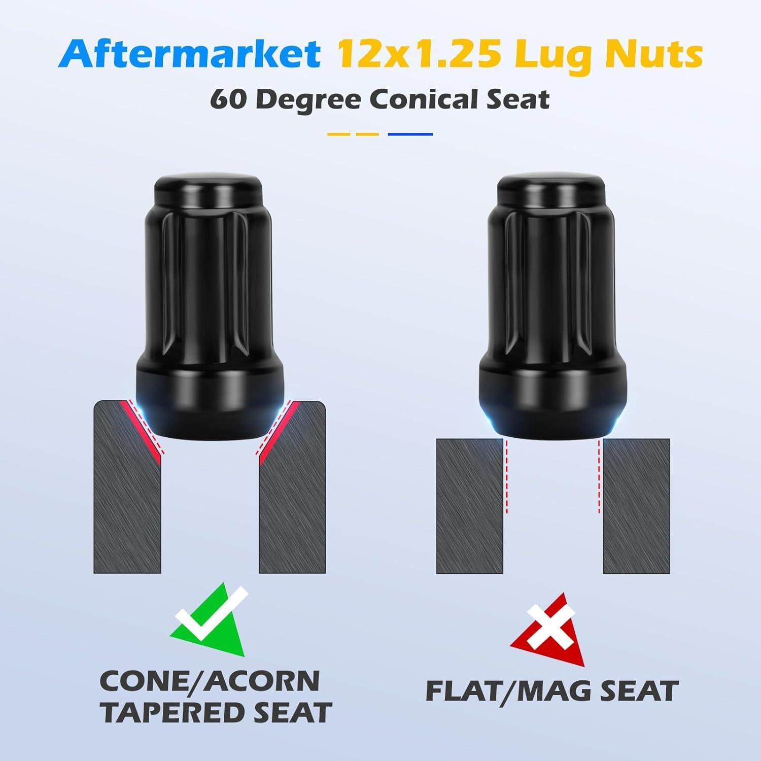 Fitment: Vehicles with wheel lug nuts requiring a 12×1.5 thread(4 lugs) and take a conical 60 degree seat, compatiable with Hon-da Pioneer, Polaris Ranger, RZR, General and more, please check the seat type of your original lug nuts firstly before placing your Order.