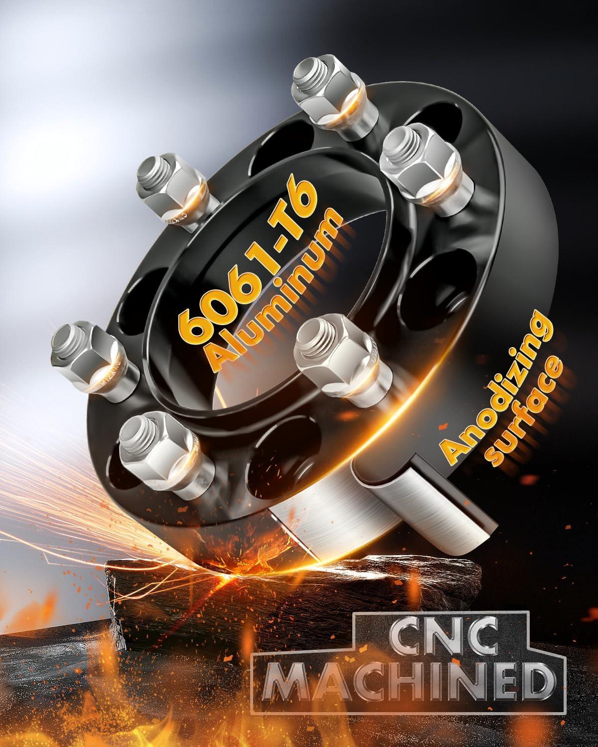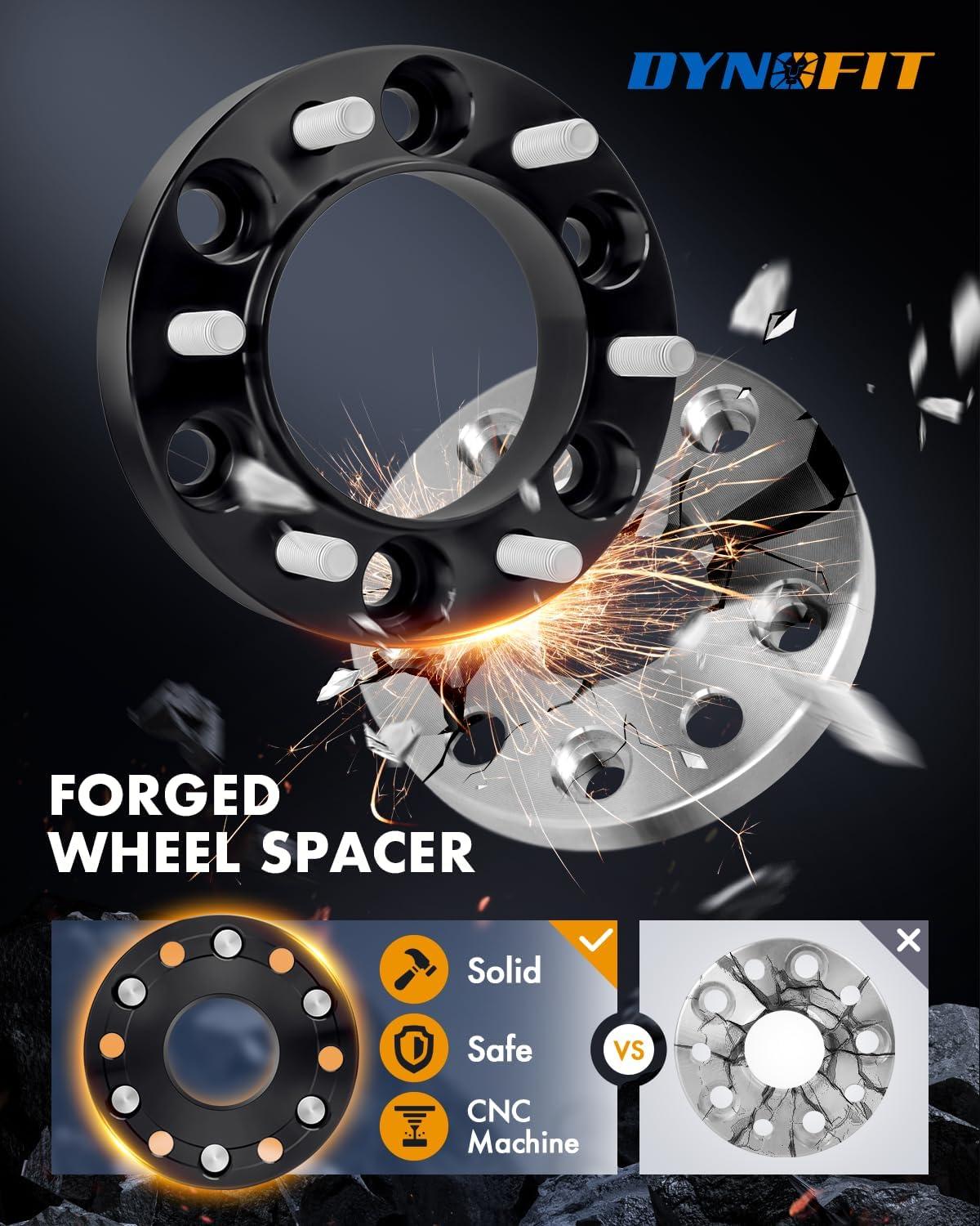 【Well Made】Dynofit wheel spacers are crafted from lightweight, anodized 6061-T6 aluminum using forged manufacturing methods, offering superior strength compared to casting. They're built tough and won't break. DACROMAT-treated bolts (SGS approved) provide higher hardness and rust resistance, while CNC processing enhances material hardness and corrosion resistance