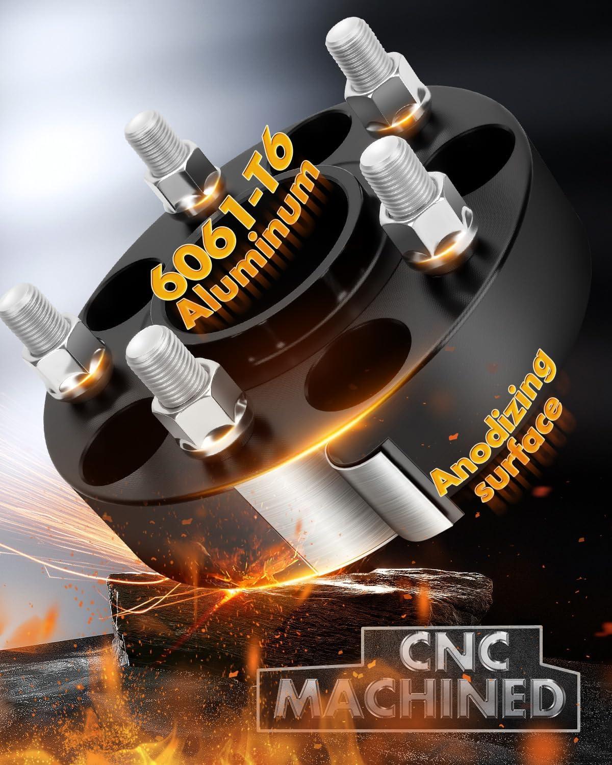 【Well Made】Dynofit wheel spacers are crafted from lightweight, anodized 6061-T6 aluminum using forged manufacturing methods, offering superior strength compared to casting. They're built tough and won't break. DACROMAT-treated bolts (SGS approved) provide higher hardness and rust resistance, while CNC processing enhances material hardness and corrosion resistance