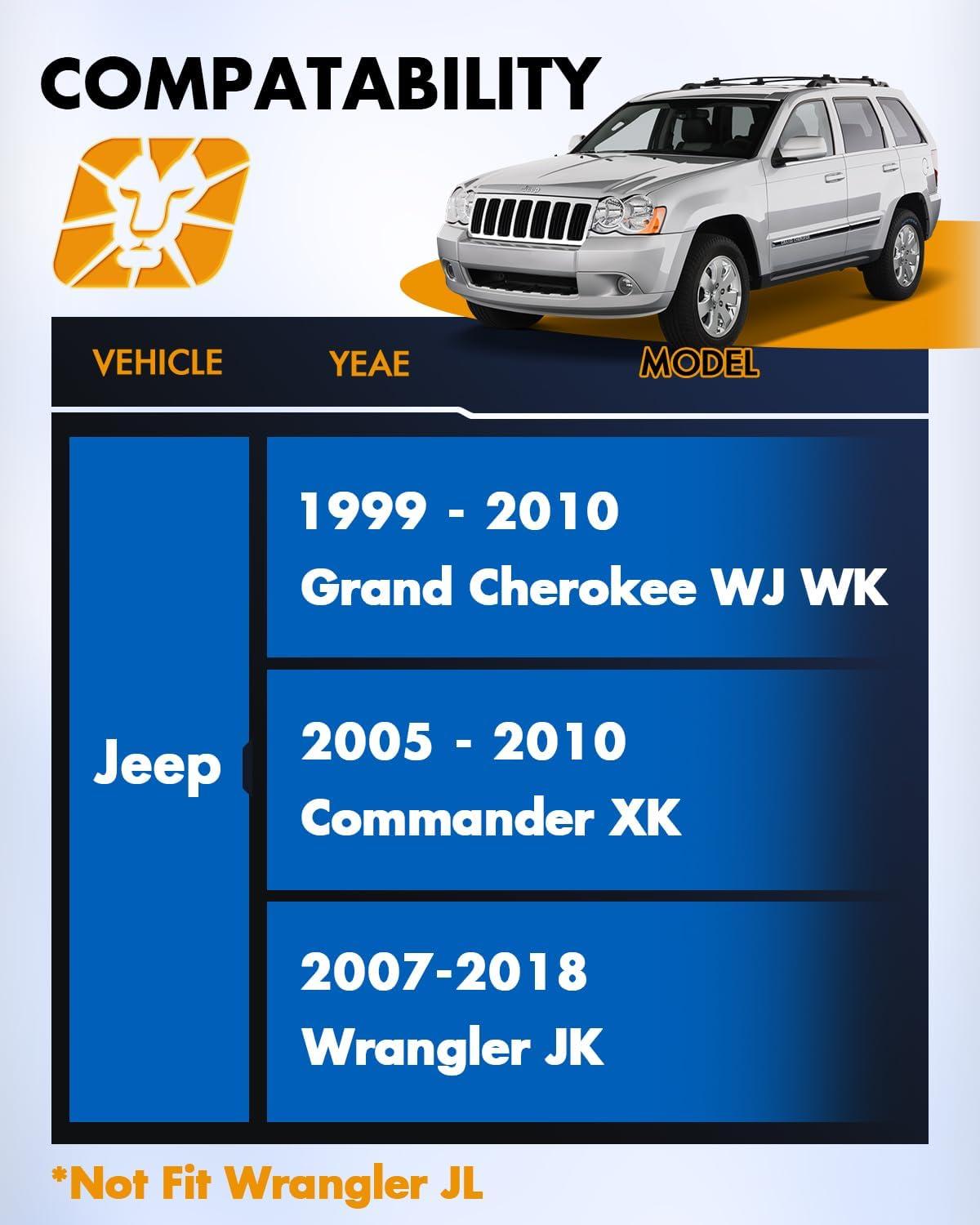 【Compatibility with Jeep】1999-2010 Grand Cherokee WJ WK, 2005-2010 Commander XK, 2007-2018 Wrangler JK (Sport, Sport S, Sahara, Rubicon)***NOT fit new Wrangler JL