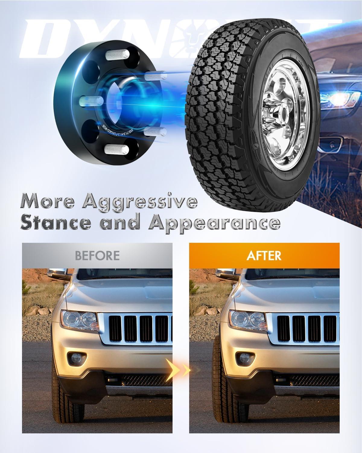 dynofit 1.5" 5x5 Wheel Spacers for 2007-2018 Jeep Wrangler JK, 1999-2010 Grand Cherokee WJ WK, 71.5mm HubCentric Wheel Spacers for 2005-2010 Commander XK, 1/2"-20 Thread, 1.5 inch Forged Spacers, 4Pcs(1.5 inch - 1/2-20 Studs)