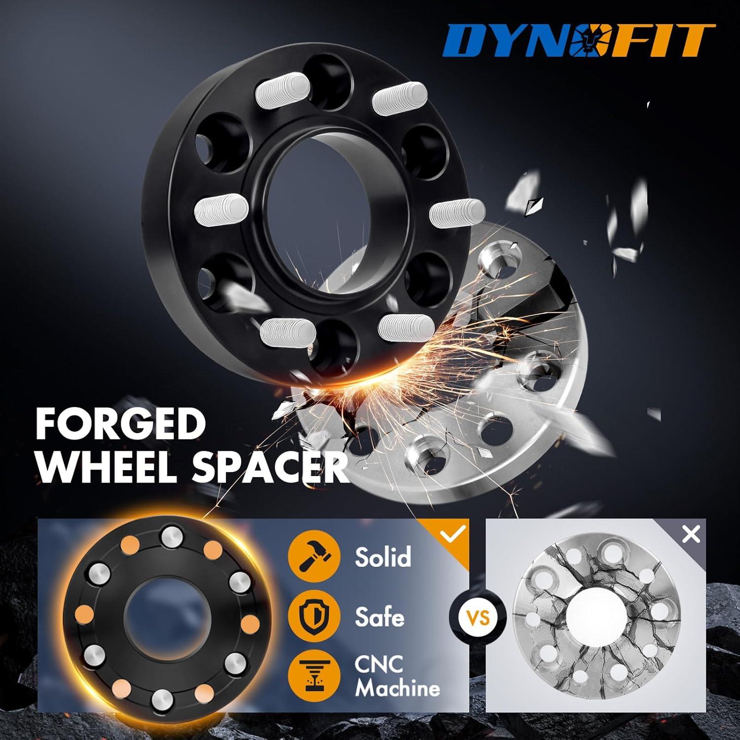 【Well Made】Dynofit wheel spacers are made of lightweight anodized black 6061-T6 aluminum by Forged Manufacturing Methods. The mechanical properties of forged parts than casting superior. It cannot literally broke in half.”DACROMAT” Treatment bolts(SGS Test Approved) are higher hardness and against rust. CNC automatic processing, enhance the hardness and corrosion resistance of the material
