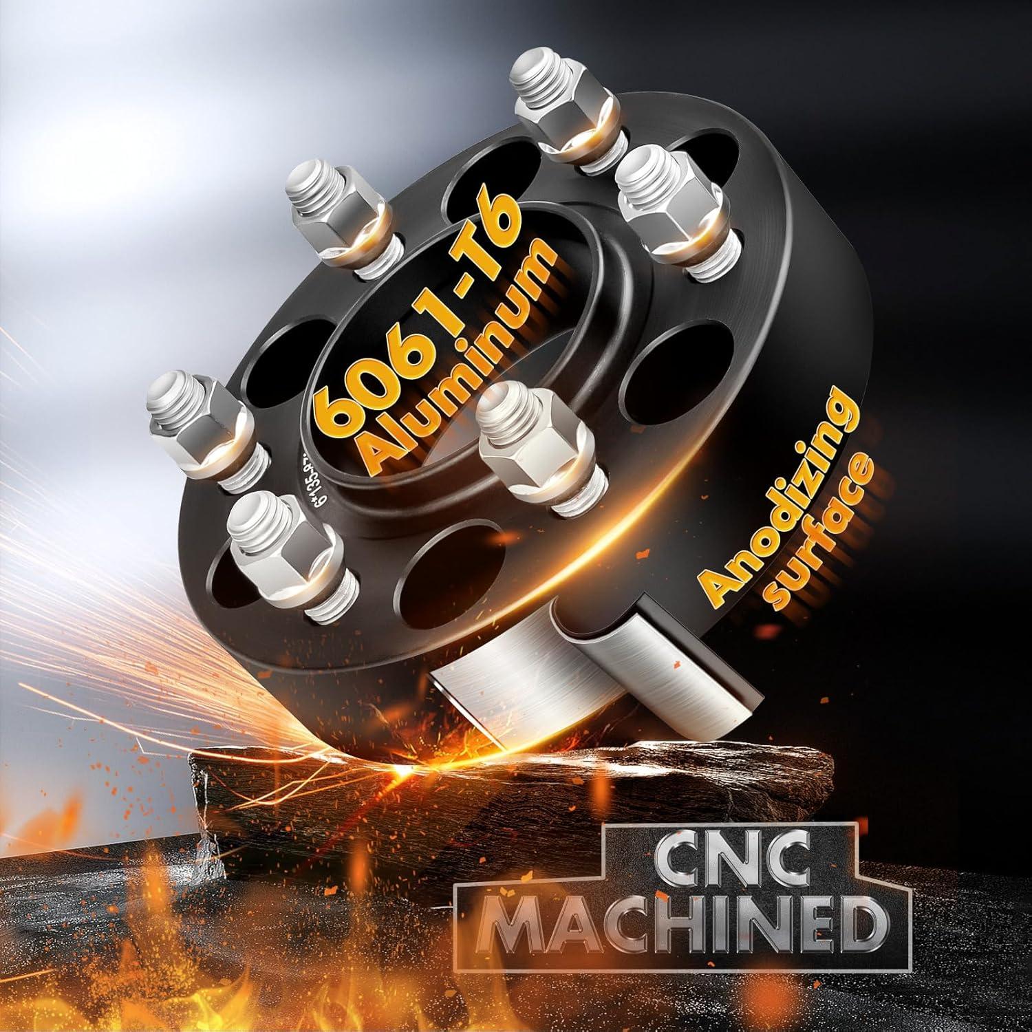 【Spacer Parameter】Wheel pattern = Vehicle bolt pattern = 6x135mm(6×5.31″), Hub Bore: 87.1mm, Thickness: 1.5″(38.1mm), Thread Pitch: M14x1.5, Set of 4 pcs wheel spacers
