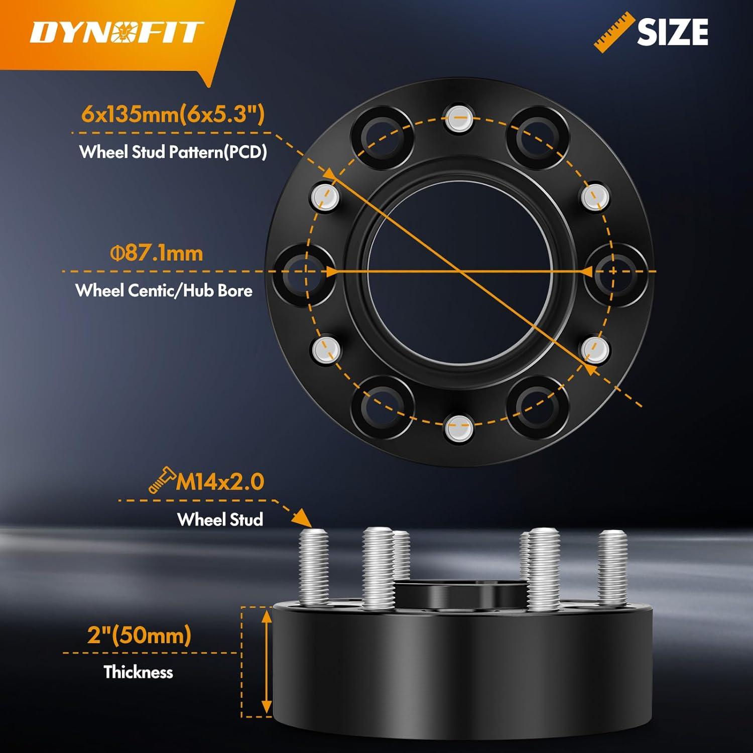 Dynofit 1.5in 6×135 Hub-Centric Wheel Spacers for F150, 87.1mm Hub Bore, M14x2.0 Thread, Forged 6-Lug Wheel Adapters for 2015+ F-150, Expedition & Navigator, Set of 4 Pcs Spacers(2 Inch (2004-2014 F150))