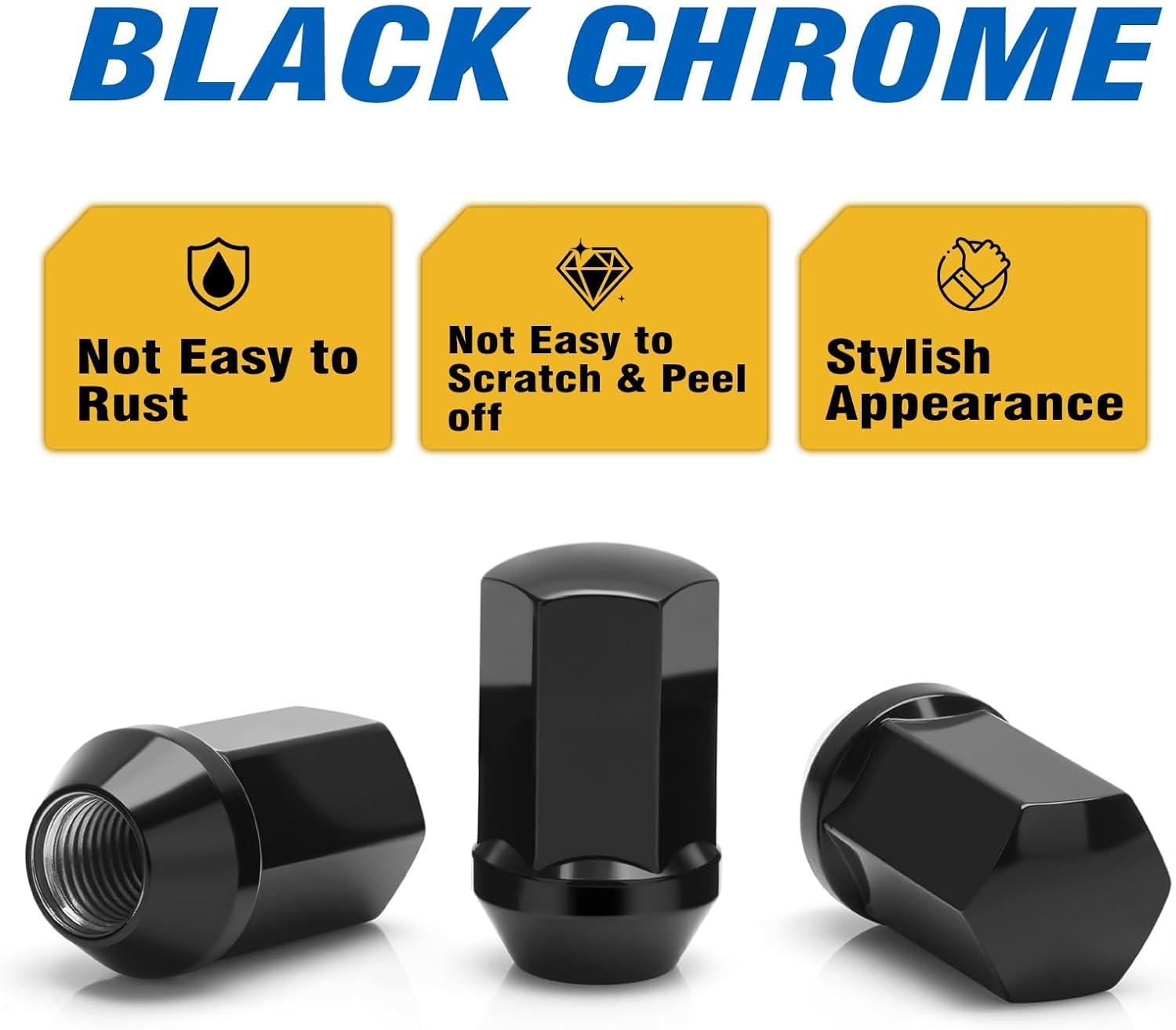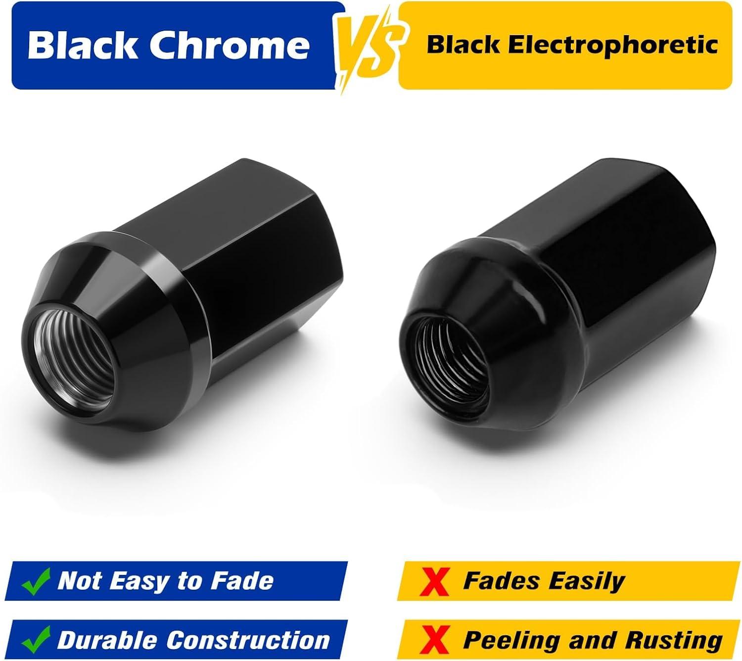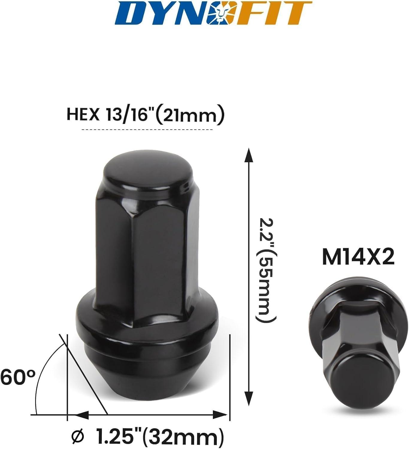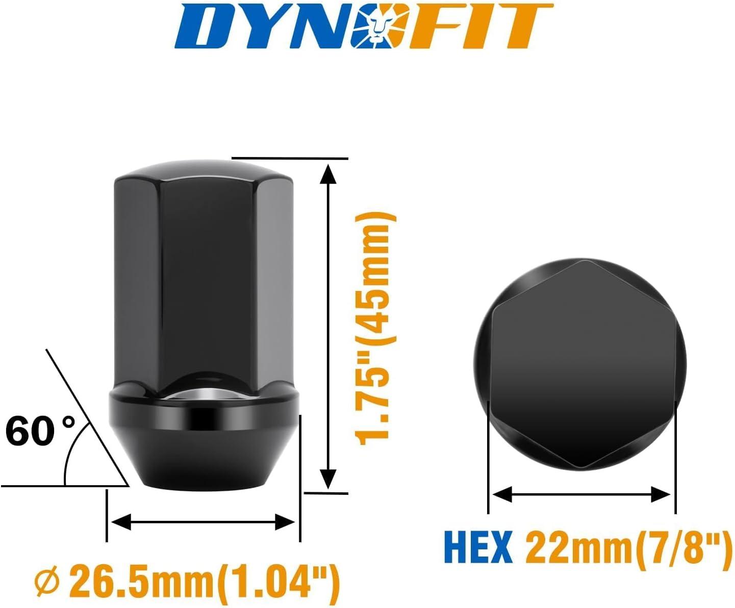 image1220 Black Wheel Lug Nuts Dynofit 20pcs 12x20 Hex 60 Degree Steel Conical Lugnuts for Aftermarket Tuner Durango Journey Viper XJ KJ KK CJ Commander XK ZJ WJ WK Liberty TJ JK Explorer Ezgo Club Car