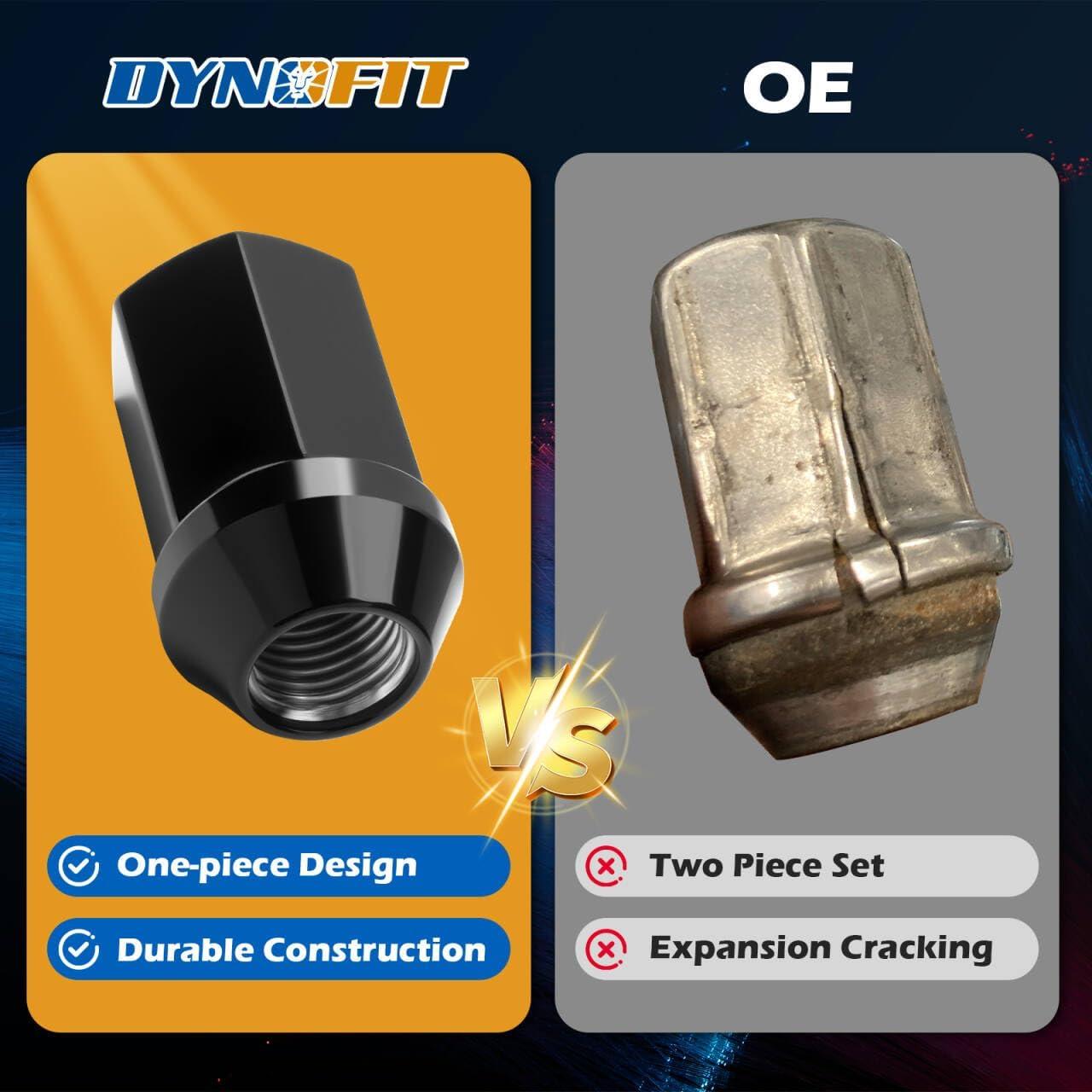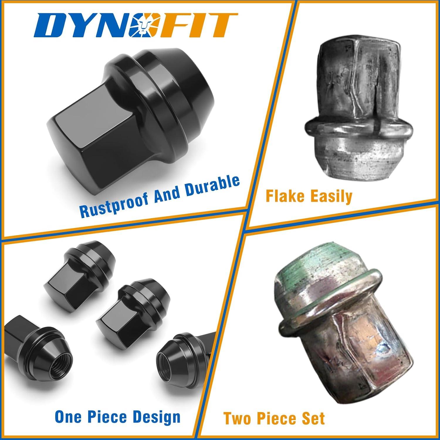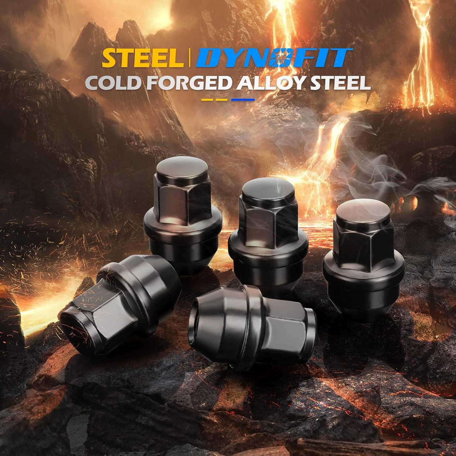 Dynofit 12mmx1.5 Stock Lug Nuts For Escape 2001-2019/Focus 2012-2018/Fusion 2006-2019, One-Piece Style OEM Wheel Nuts Replace for Factory Nut Compatible with Ford Lincoln MKC MKZ, Work on AL/Steel Rim(Black)