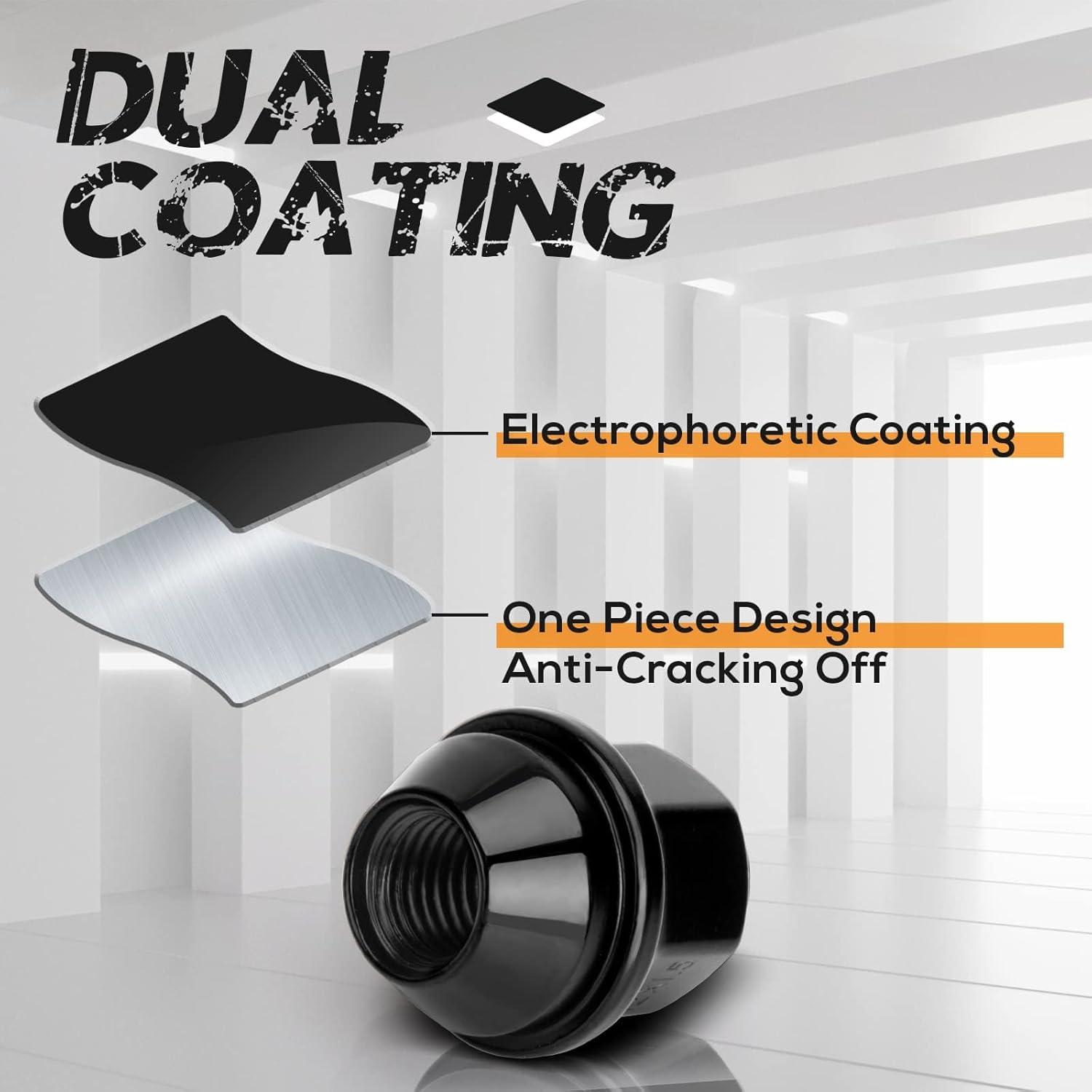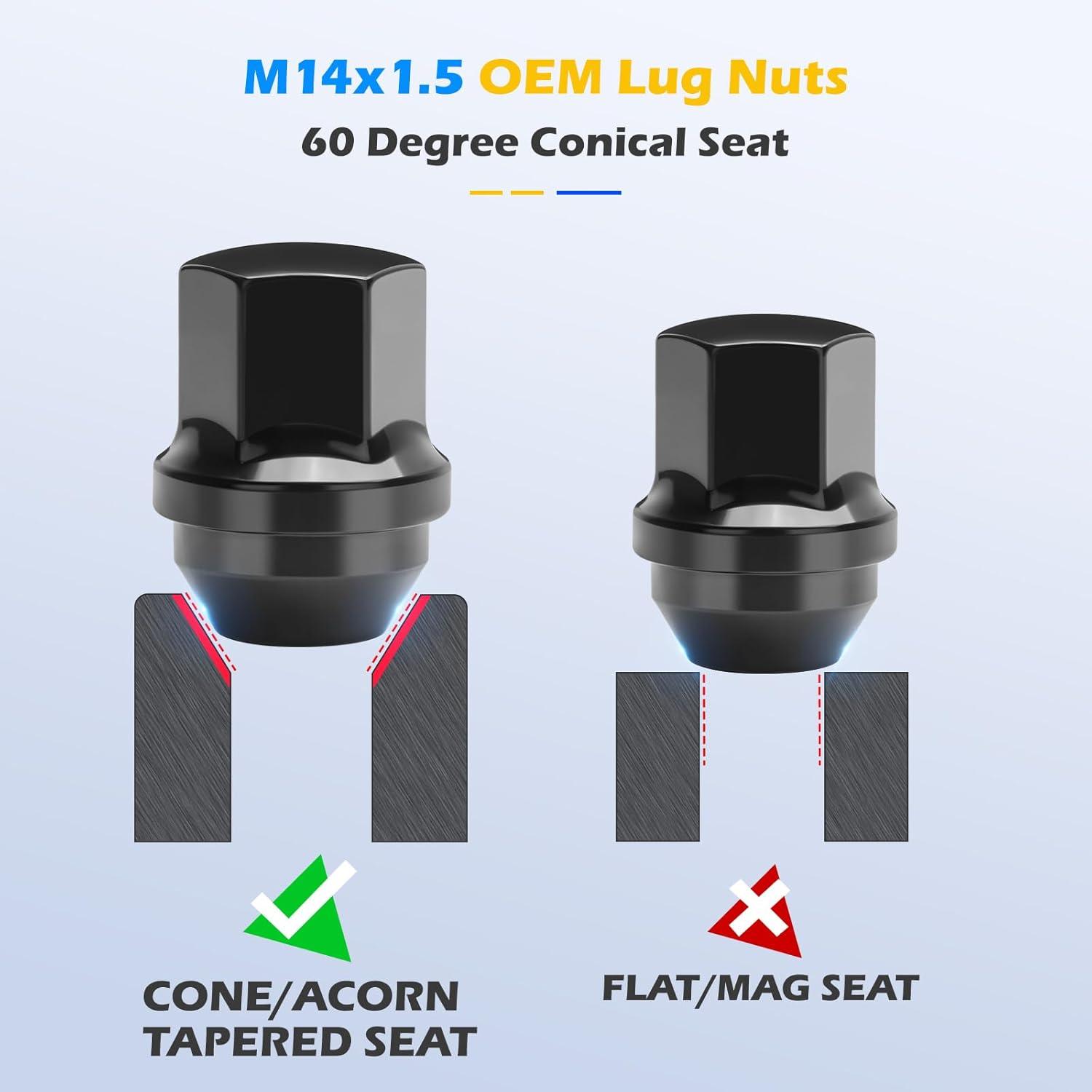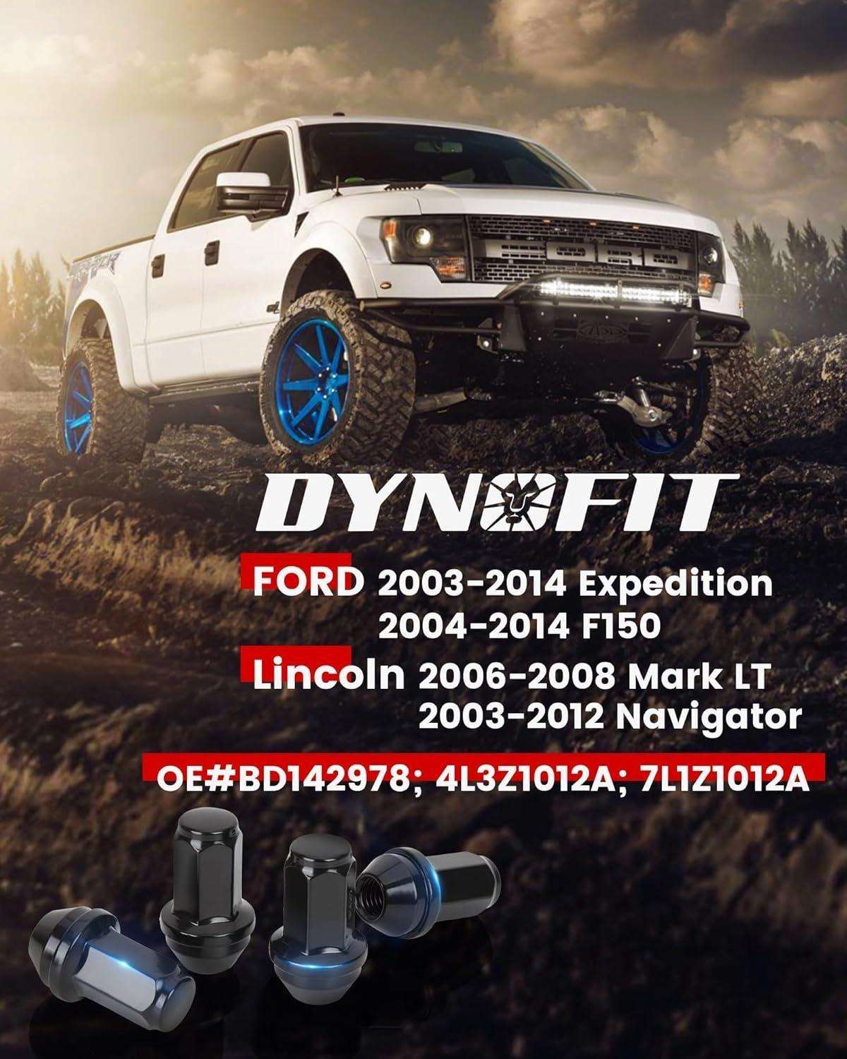 Dynofit 12mmx1.5 Stock Lug Nuts For Escape 2001-2019/Focus 2012-2018/Fusion 2006-2019, One-Piece Style OEM Wheel Nuts Replace for Factory Nut Compatible with Ford Lincoln MKC MKZ, Work on AL/Steel Rim(Black)