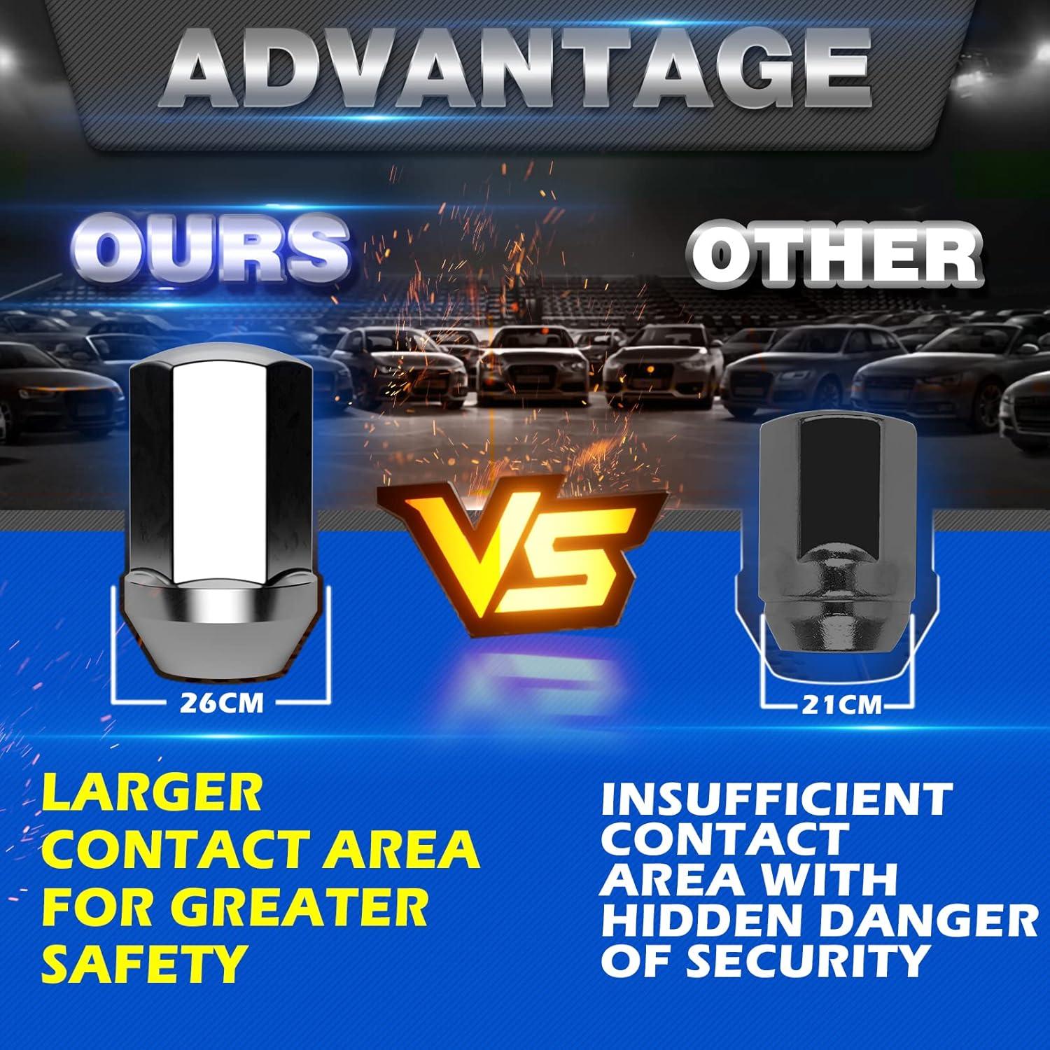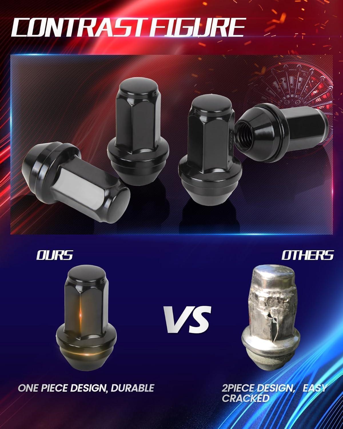Performance: One-piece structure design, better than original “cap” style (two piece design), which is more safer while you are installing the lug nuts and all of our products past 72 hours salt spray tested which can promise a longer service life compared to 48 hours for others.
