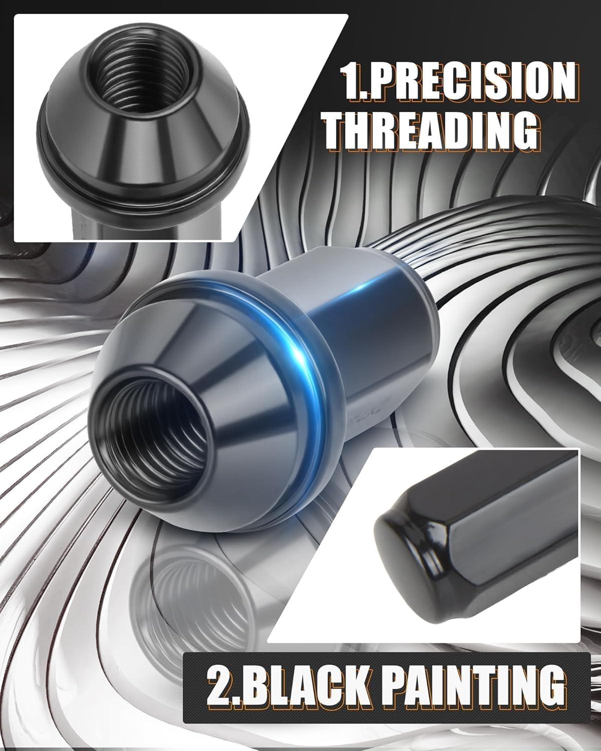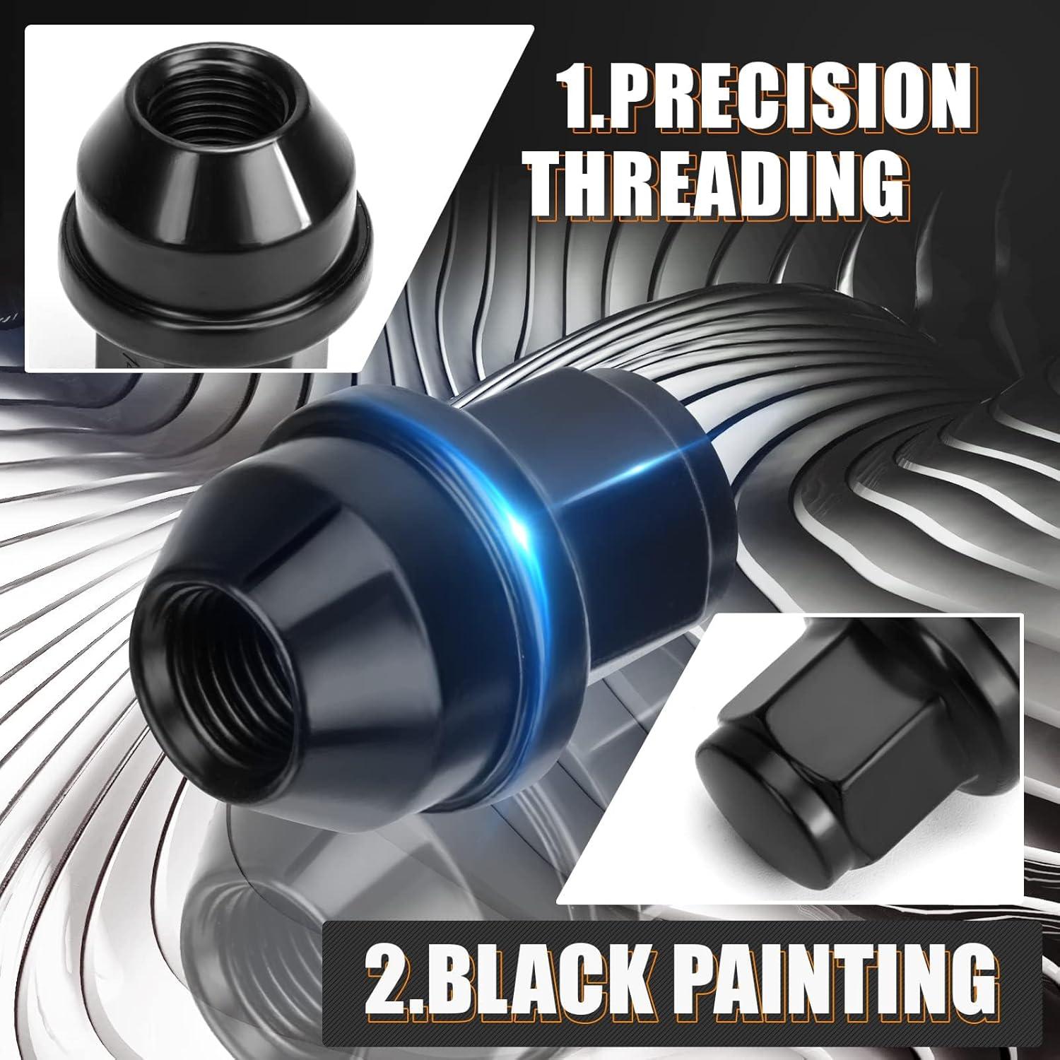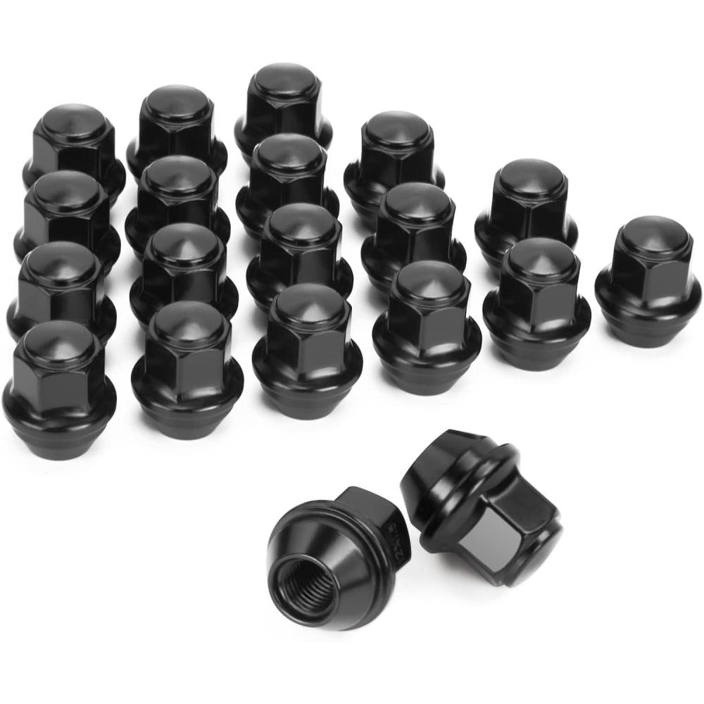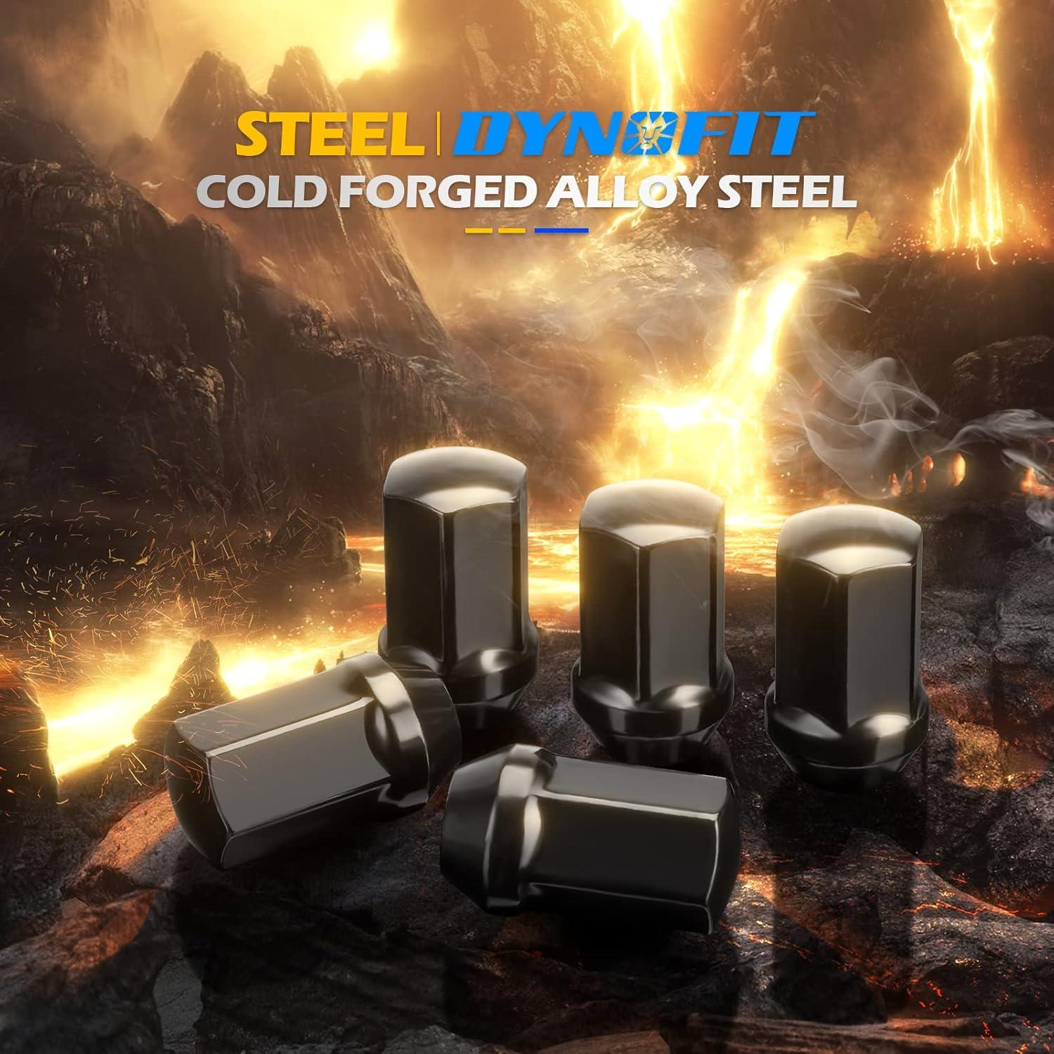 1/2-20 Black Wheel Lug Nuts, Dynofit 20pcs 1/2×20 Hex 60 Degree Steel Conical Lugnuts for Aftermarket Tuner Durango Journey Viper XJ KJ KK CJ Commander XK ZJ WJ WK Liberty TJ JK Explorer Ezgo Club Car