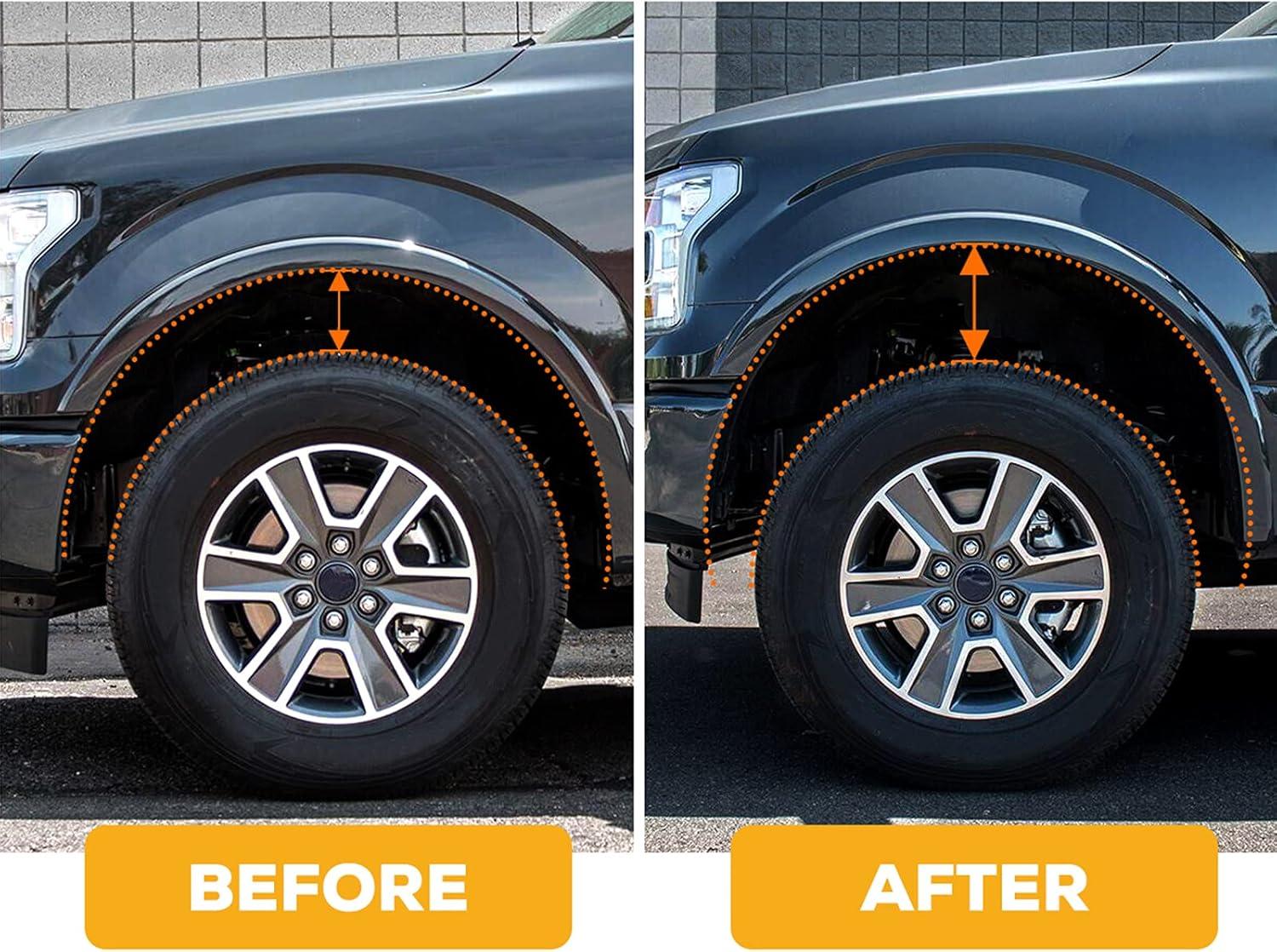 【Note】2.5″ raise leveling kit. When you receive it, it's gonna be 1-2 inch of thickness but will lift 2.5 inch (lever principle). True 2.5″ front lift, but not a real 2.5 inch thickness