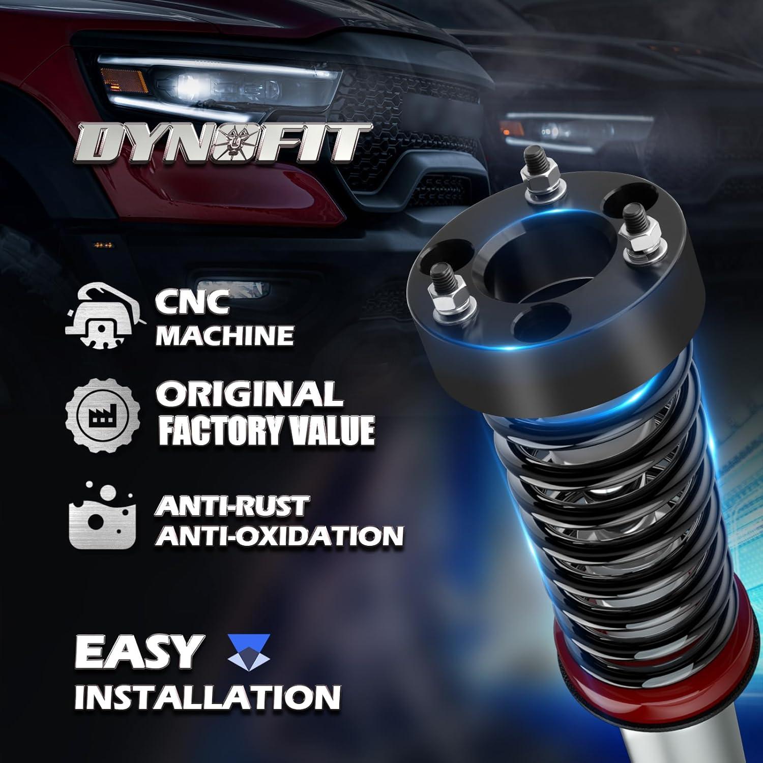dynofit 2.5″ Front Leveling Lift Kits for 2006-2019-2023 Dodge Ram 1500 4WD, 2005-2011 Dodge Dakota 2WD, Raise 2.5 Inch Front Strut Spacer Suspension Lift Spacers