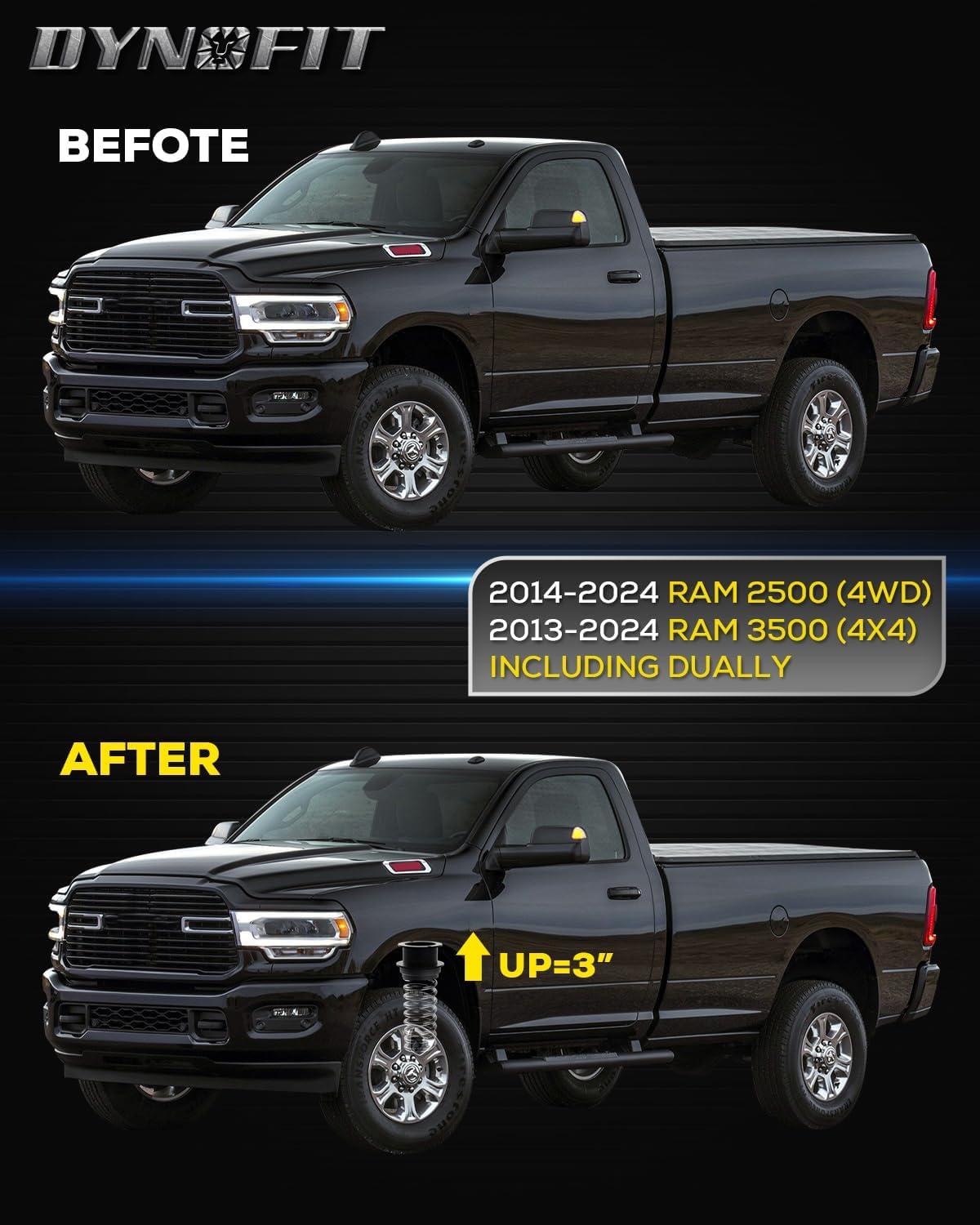 Vehicle Compatibility: 2014-2024 Dodge Ram 2500 4WD, 2013-2024 Ram 3500 4WD (*DOES NOT for 2WD, DOES NOT Compatible with Power Wagon or Snow Prep/Ambulance Package)