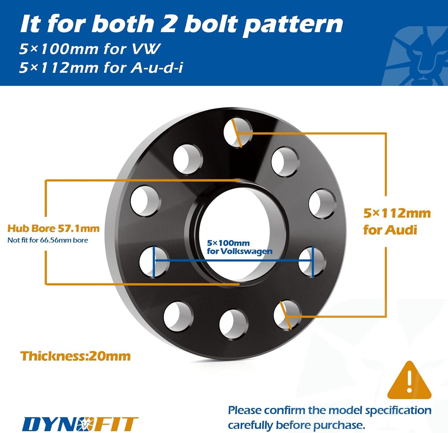 dynofit 5x100 5x112 Wheel Spacers for Au-di A4 A6 A8 A3 S4 S6 S8 A6 Allroad TT, 2PCS 20mm Hubcentric Forged Spacers with VW Jetta Golf Tiguan Beetle CC, 57.1mm Hub Bore 5 Lug w/o Lug Bolts
