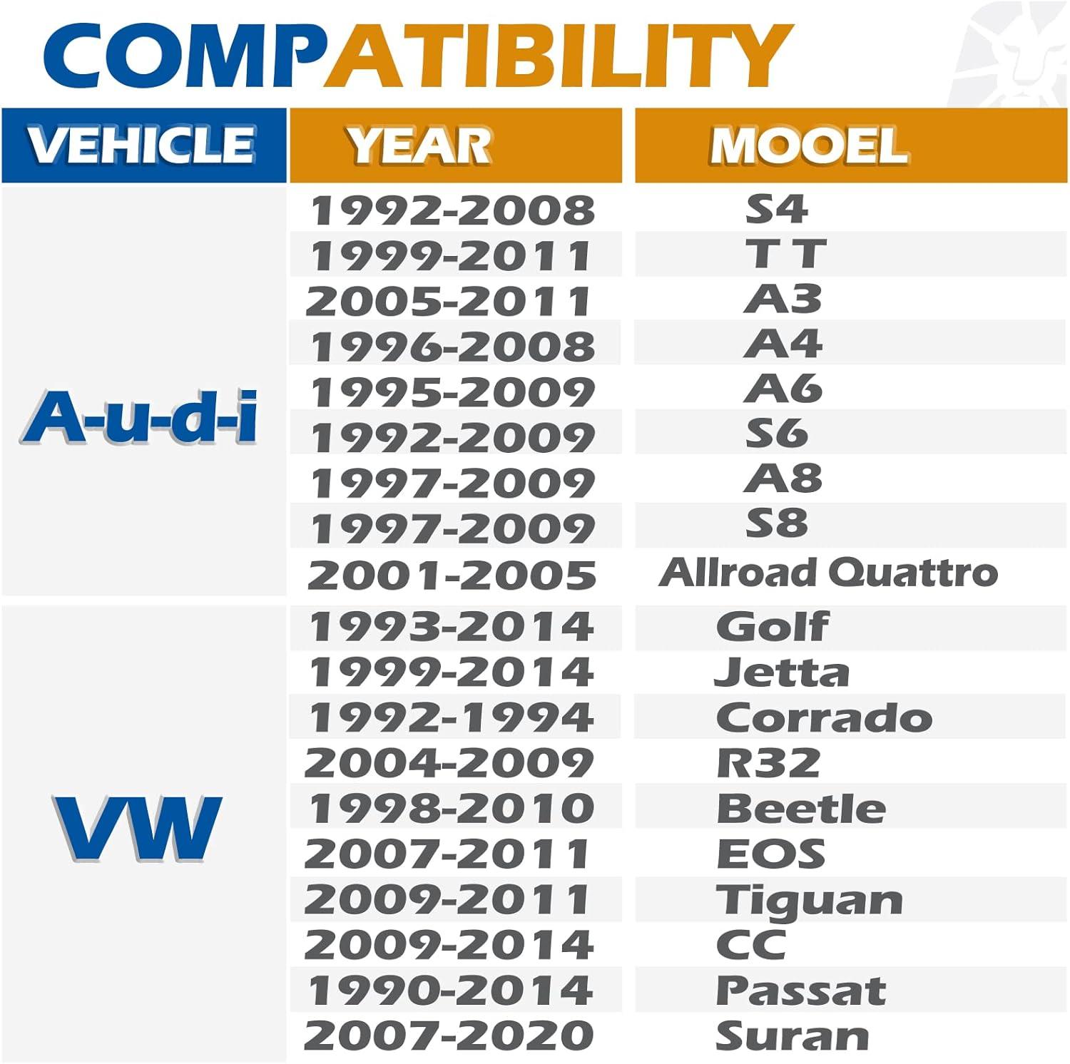 Fitment: The 5×100 & 5×112 Wheel Spacers are compatible with 1992-2008 S4,1999-2011 TT,2001-2005 Allroad Quattro,2005-2011 A3,1996-2008 A4,1995-2009 A6,1992-2009 S6,1997-2009 A8,1997-2009 S8; 1993-2014 Golf,1999-2014 Jetta,1992-1994 Corrado,2004-2009 R32,1998-2010 Beetle,2007-2011 EOS,2009-2011 Tiguan,2009-2014 CC,1990-2014 Passat,2007-2020 Suran.