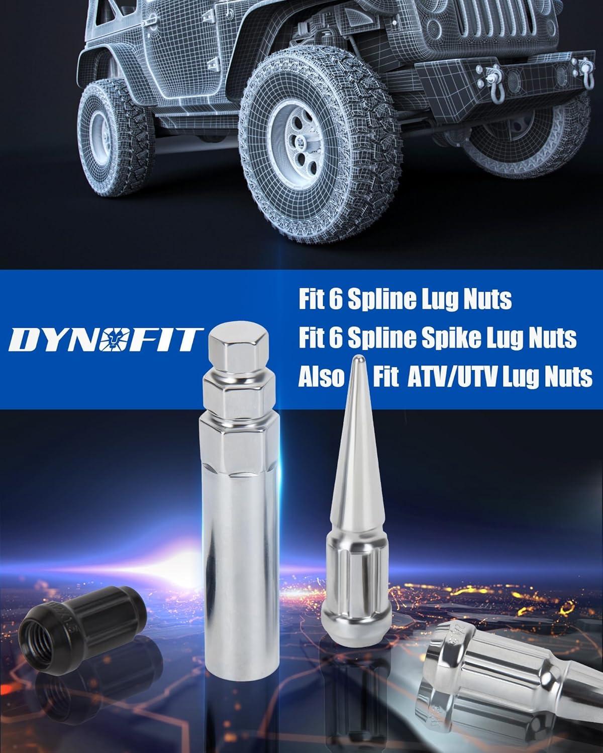 Dynofit 6 Spline Lug Nuts Socket Key, Universal Chrome Spike Key fit Hex 19mm&17mm&14mm Tool Wrench,1PC Sleeve fit Thread M12X1.5,12X1.25,1/2″-20,3/8″-24,10mmx1.25 Small Nuts(Silver)