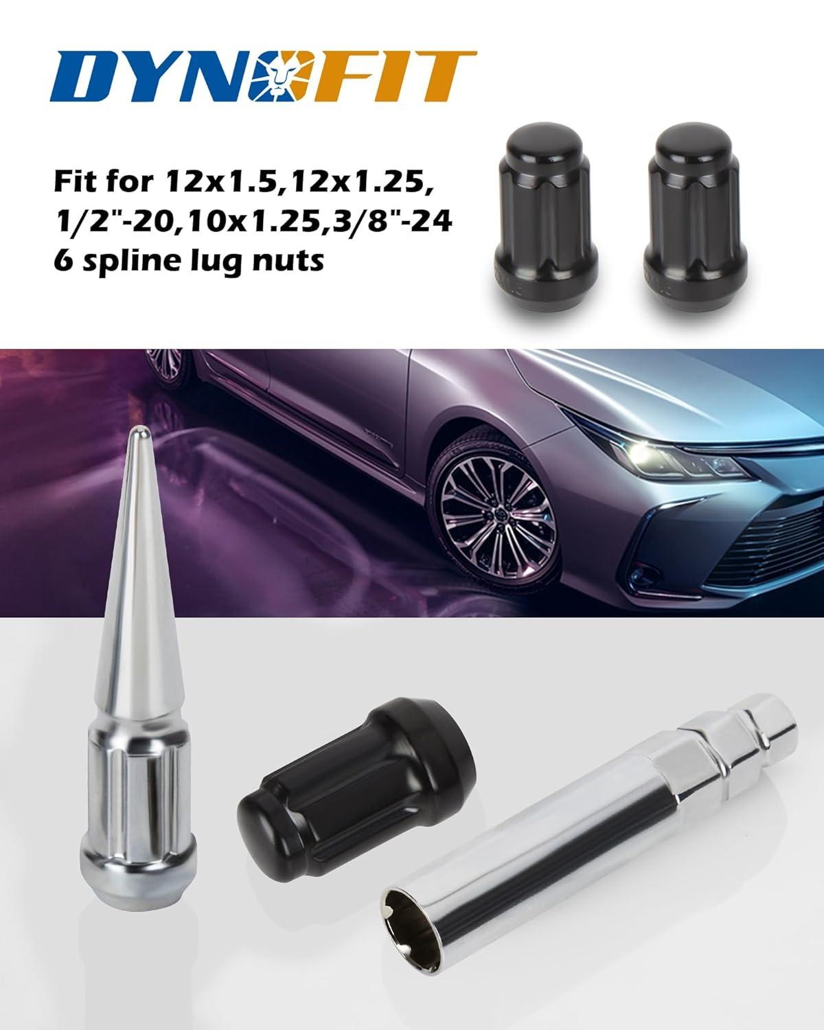 Dynofit 6 Spline Lug Nuts Socket Key, Universal Chrome Spike Key fit Hex 19mm&17mm&14mm Tool Wrench,1PC Sleeve fit Thread M12X1.5,12X1.25,1/2″-20,3/8″-24,10mmx1.25 Small Nuts(Black)