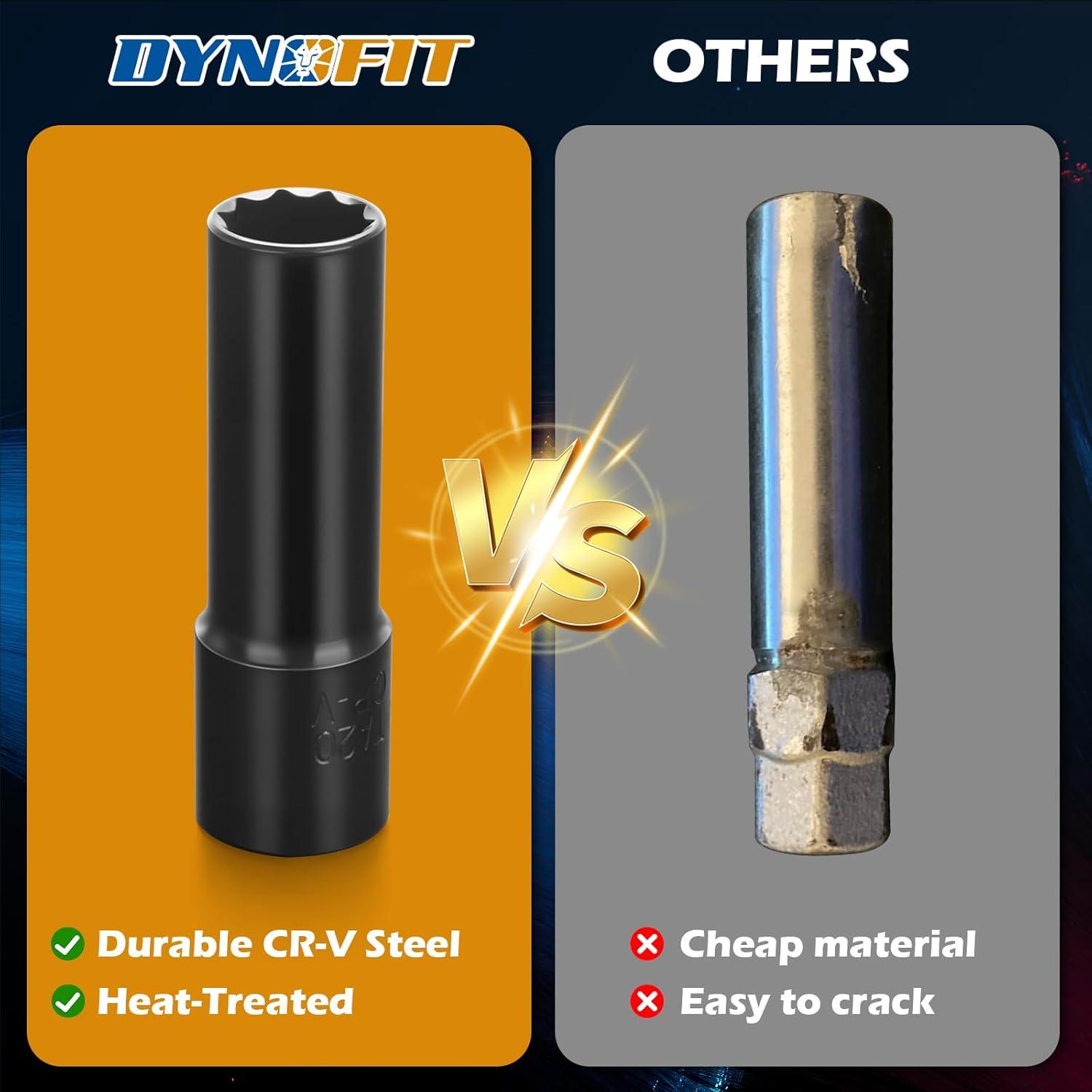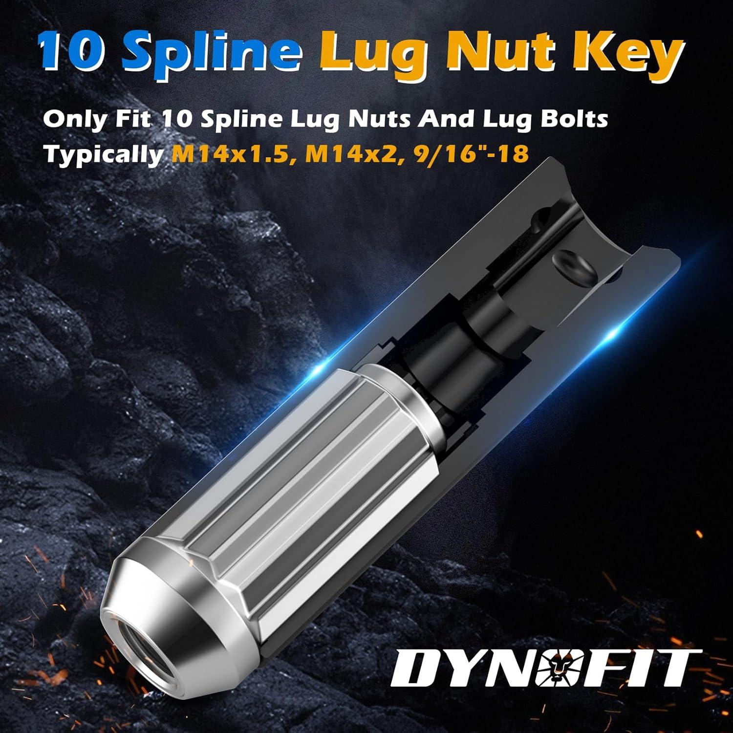 Dynofit 6 spline lug nut key only work with 6 Point/spline Lug Nuts, Typically 12×1.25, 12×1.5, 1/2-20'' thread pitch, Not work on hex or spike lug nuts.