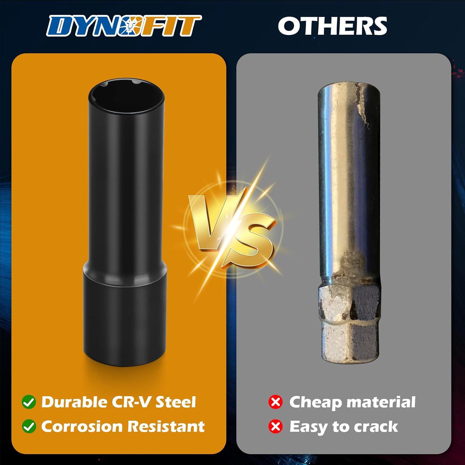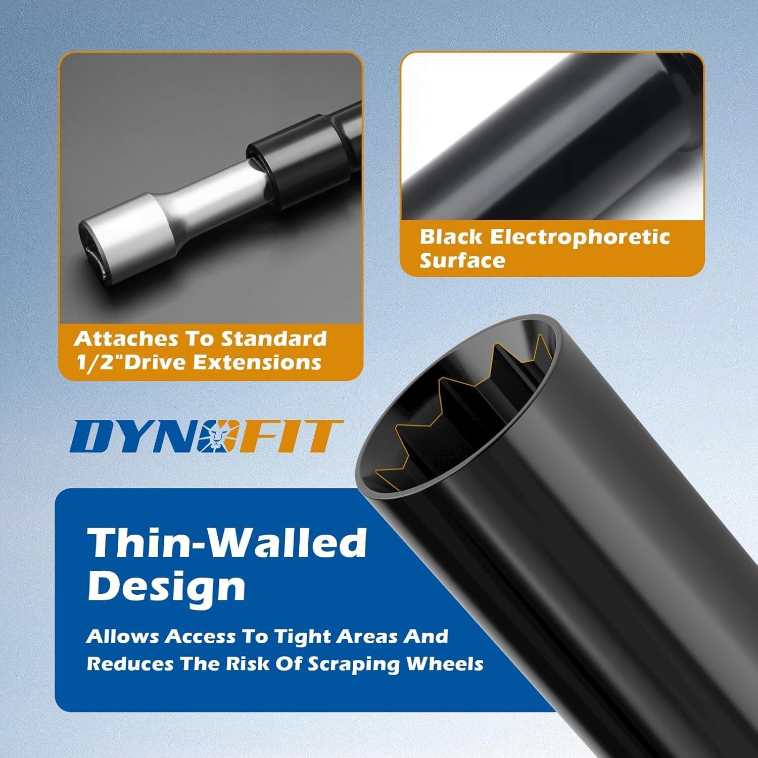 DYNOFIT 6 Spline Tuner Lug Nuts Key for Wrench with 3/4 inch (19mm) and 13/16 inch(21mm) Hex, Aftermarket Spline Lug Nut Socket Replacement Tool for 1/2″ 12×1.5 12×1.25 Wheel Nuts(Black)