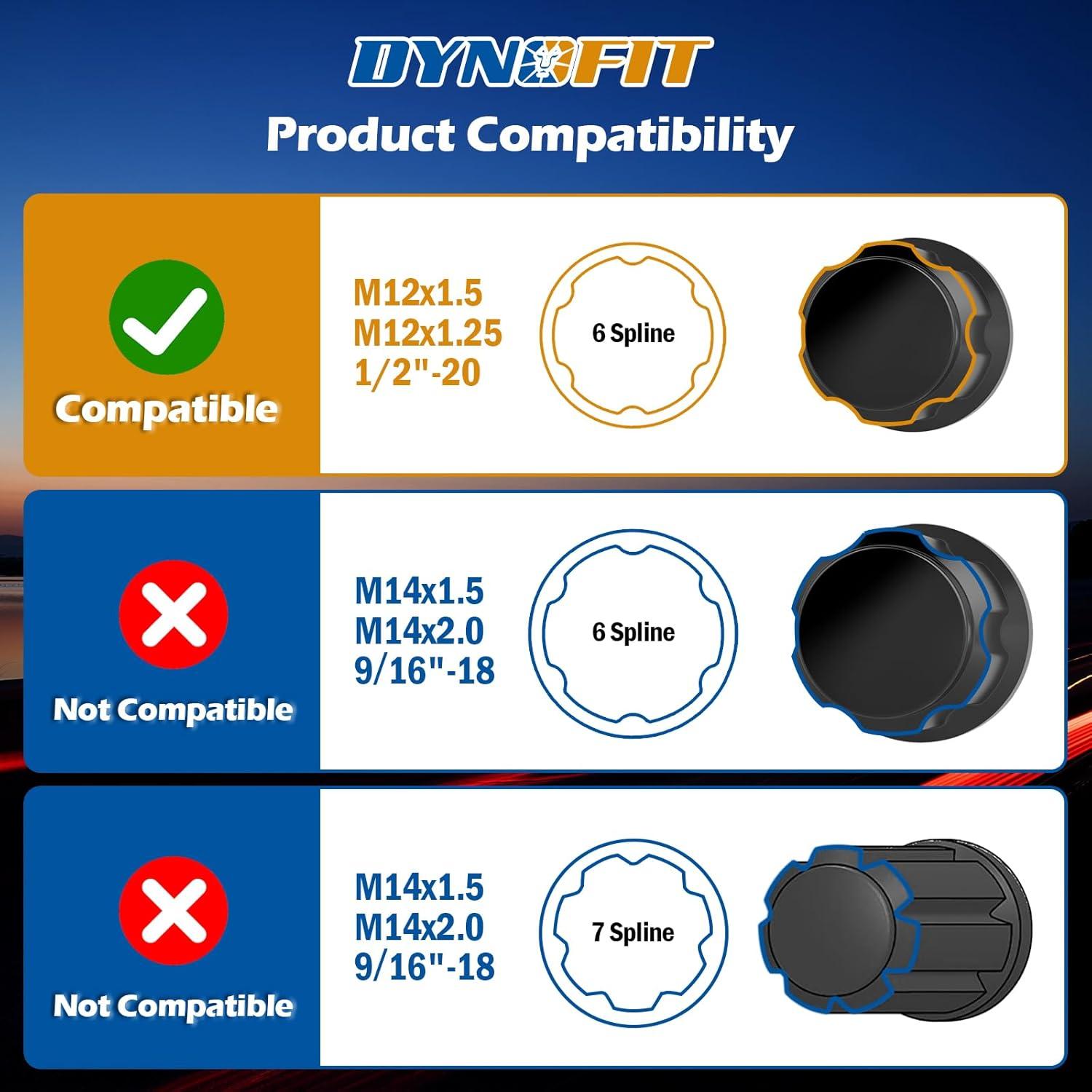 Fitment: Only work with 6 Point/spline Lug Nuts, Typically 12×1.25, 12×1.5, 1/2-20'' thread pitch, Not work on hex or spike lugnuts.