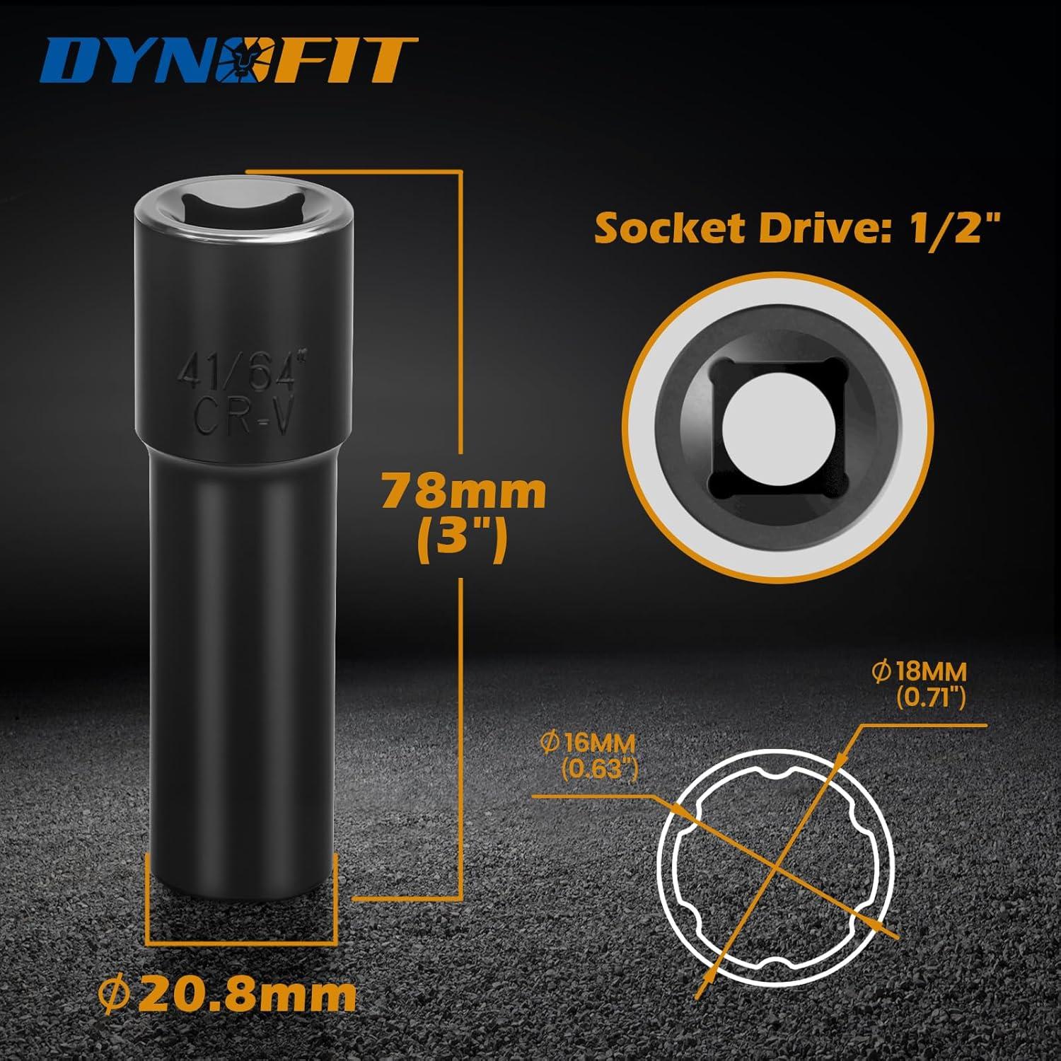 DYNOFIT 6 Spline Tuner Lug Nuts Key for Wrench with 3/4 inch (19mm) and 13/16 inch(21mm) Hex, Aftermarket Spline Lug Nut Socket Replacement Tool for 1/2" 12x1.5 12x1.25 Wheel Nuts(Black)