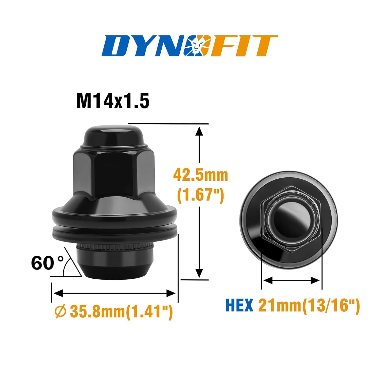 Dynofit M14x1.5 Lug Nuts for 2024+ Tacoma 4Runner,2022+ LX600 Tundra Grand Highlander,Compatible with Toyota Lexus,24PCS 14x1.5 OEM Chrome Wheel Lug Nuts 13/16" Mag Washer,OE# 90942-A1007|90942-01121(Black)