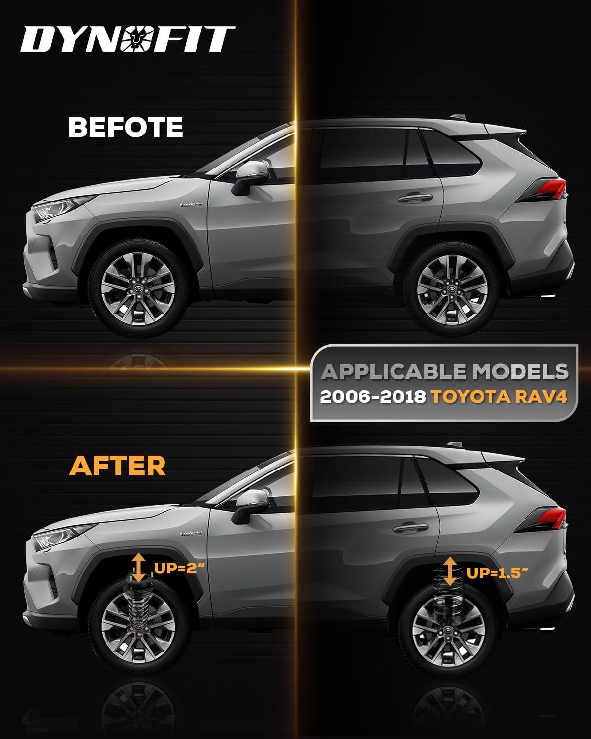 Dynofit RAV4 2" Front and 1.5" Rear Lift kits, Upgrade Sway Bar End-links, Front Strut Spacers and Rear Coil Spring Spacers Compatible with 2006-2018 Toyota RAV4, New Update Full Leveling Lift Kits