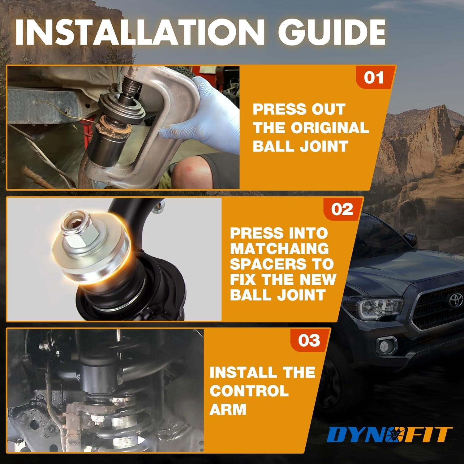 【Heavy Duty Ball Joint】dynofit's heat-treated ball joints with zinc-nickel alloy cost more but last longer, Ball joints have a greater range of motion for chassis alignment perfect. High-quality ball joint dust cover keep dirt out extends service life